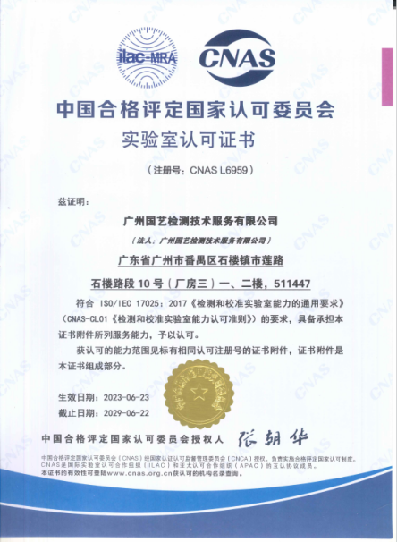 國藝檢測CNAS資質(zhì)